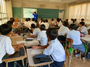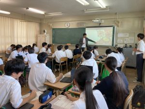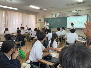 9月11日(木)九州産業大学の留学生(以下「留学生」)8名と玄界高校1年生(約320名)を対象とした国際交流授業を実施しました。