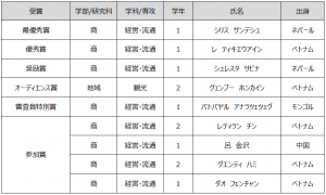 最優秀賞に選ばれたのは、ネパール出身の商学部1年次生シリス サンデシュさんでした。