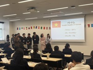ランチ後は、留学生(中国・ベトナム)による文化紹介に加え、母国にちなんだクイズやボール遊びを一緒に体験しました。